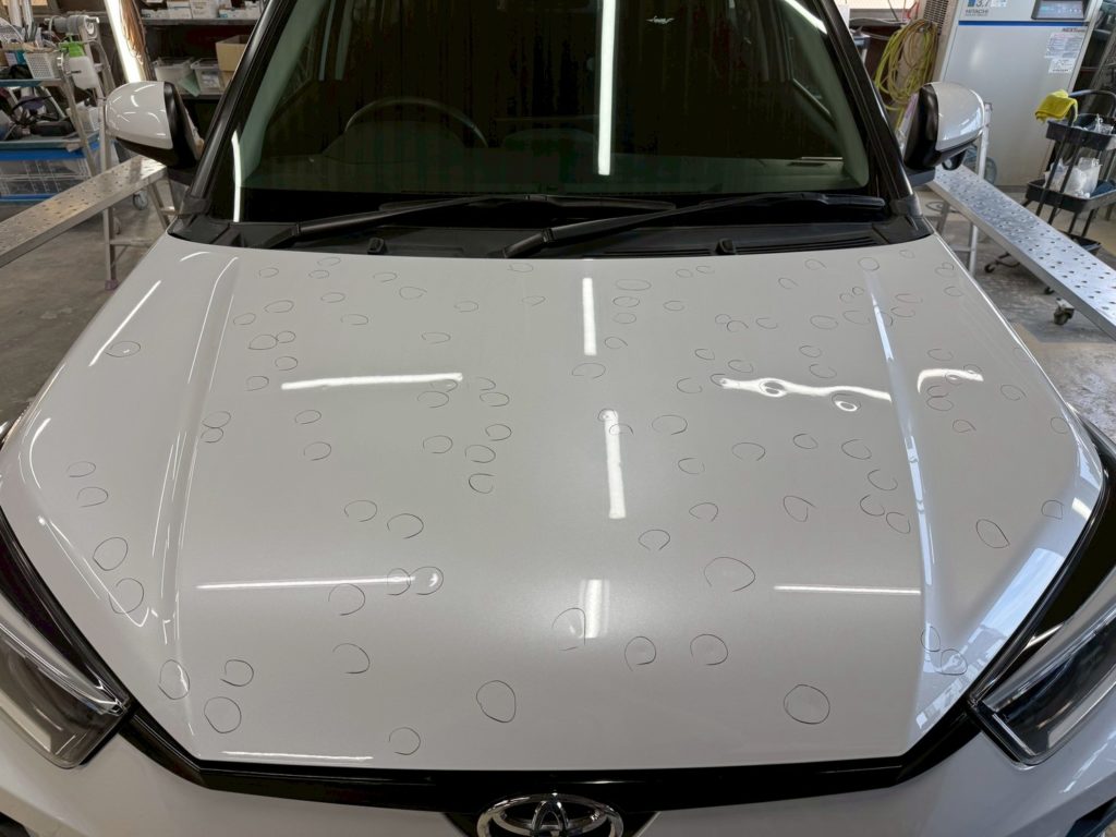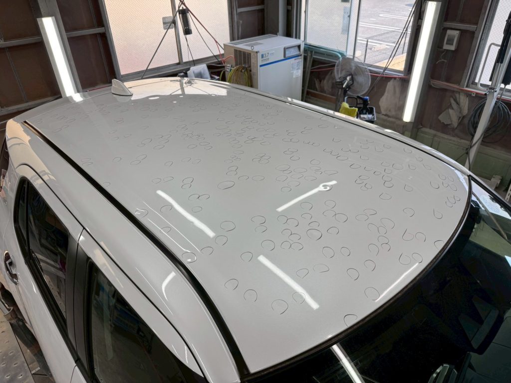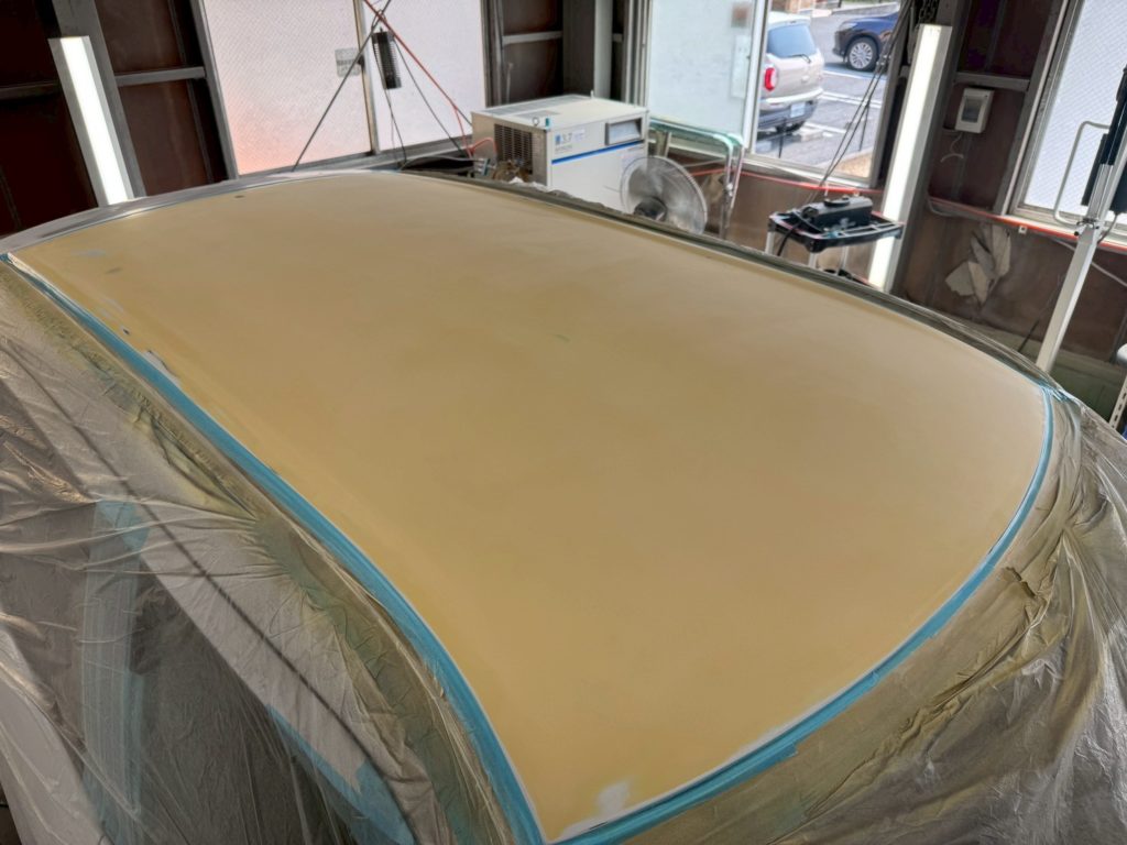 デントリペアにて凹みを修正し、パテ・サーフェーサーにて下地処理を丁寧に行います
