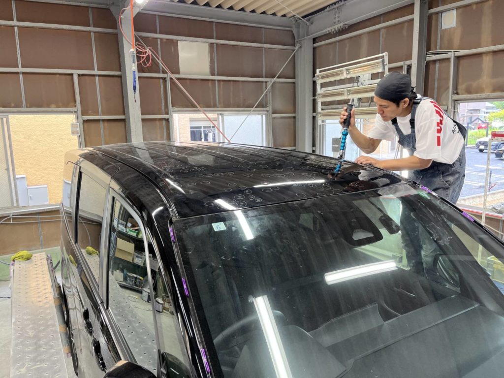 ボンネット・ルーフ・左側面に凹み等があるため修理していきます⚒️