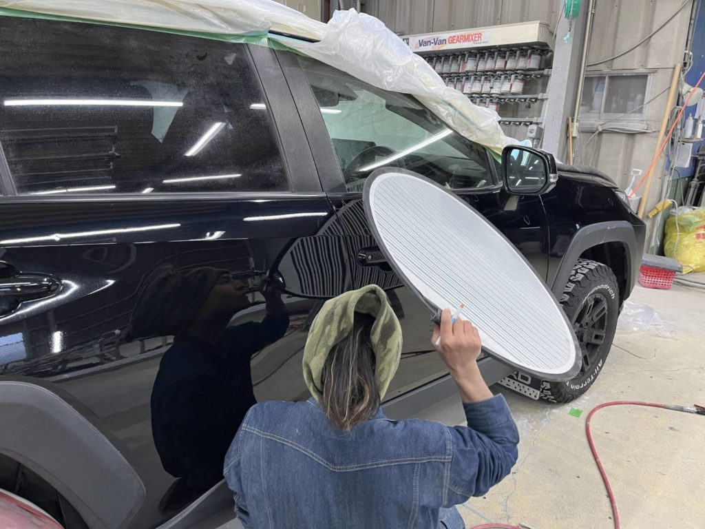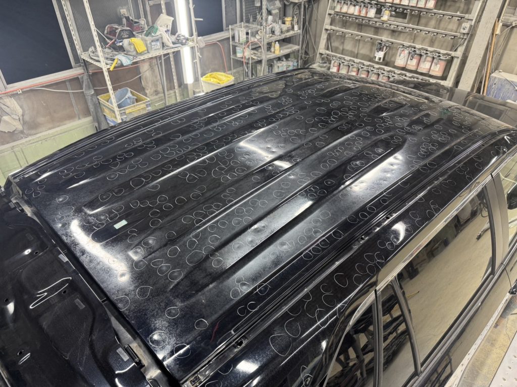 今回はルーフ・左右側面に多く凹みがあったため補修しました🔧
