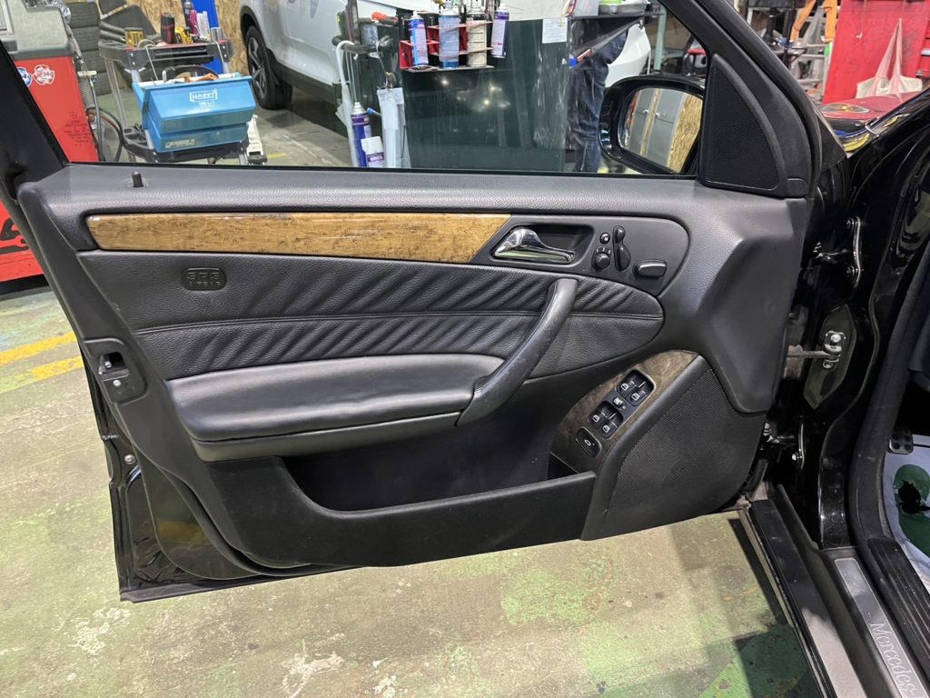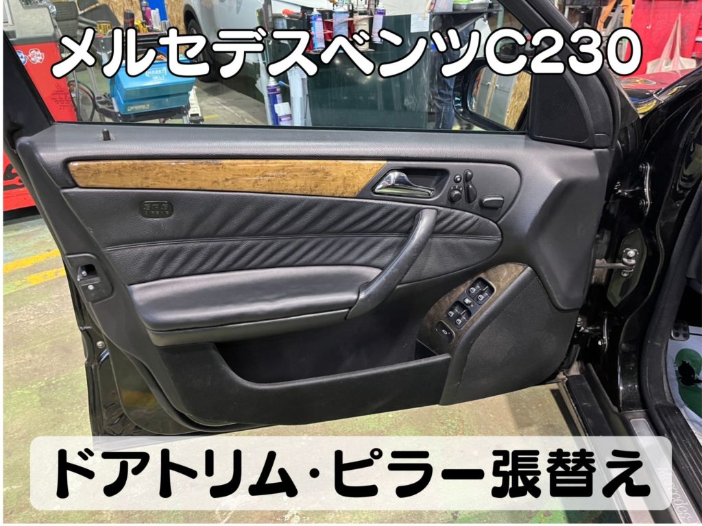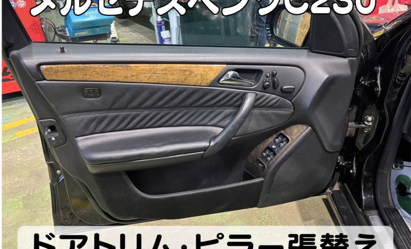 メルセデス・ベンツ C230 名古屋ドアトリム張替え 名古屋ベンツ内装リペア 大府ピラー張替え 名古屋C クラス内装アレンジ 刈谷ベンツドアトリム張替え 名古屋内装アレンジ 整備鈑金作業実績年間5800台超